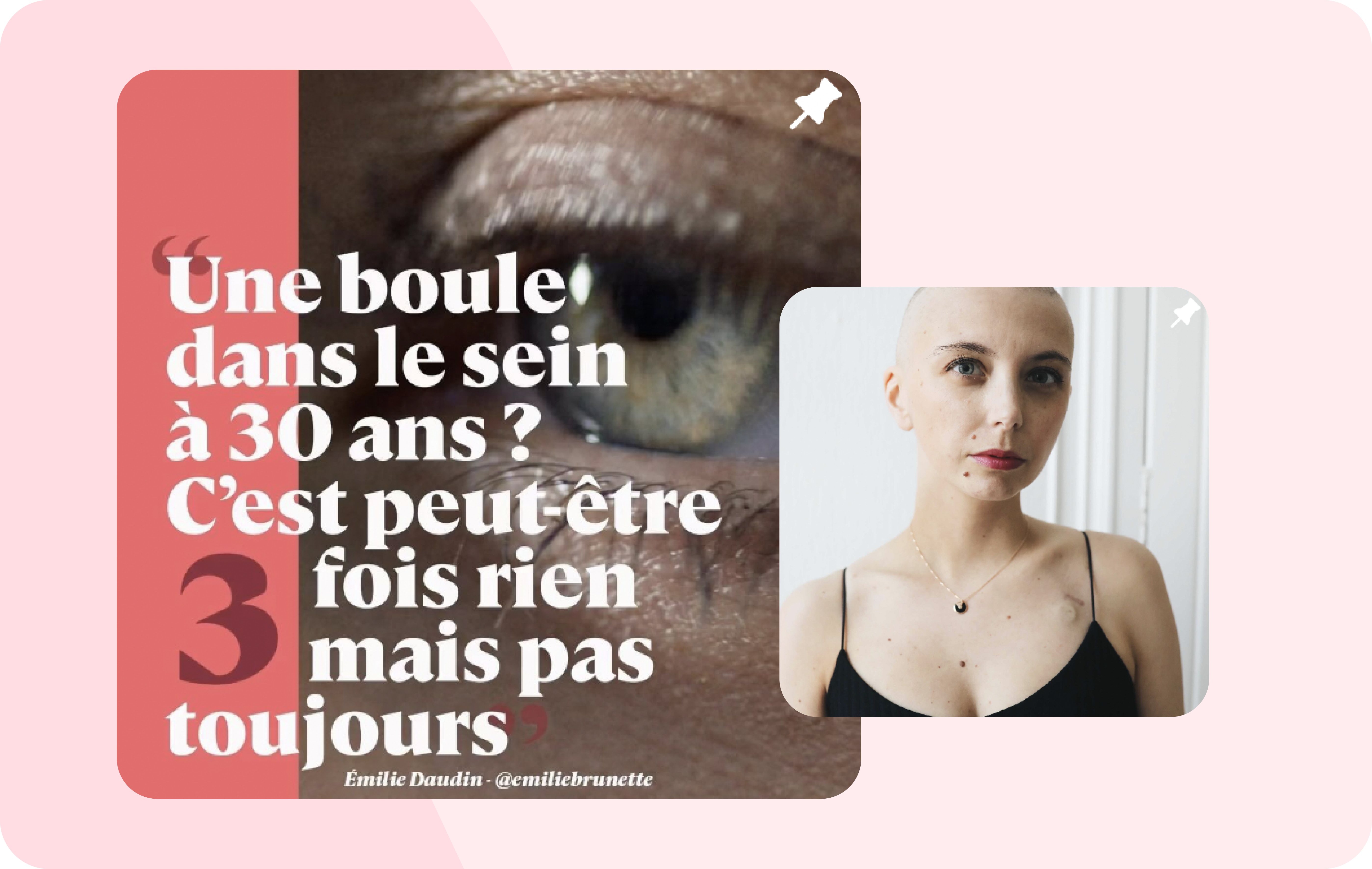 Il est recommandé aux femmes de surveiller leur poitrine par auto-palpation une fois par mois, dès l’âge de 25 ans. En effet, même si le cancer du sein est plus rare chez les femmes de moins de 40 ans, certaines formes peuvent se déclarer tôt. C’est le cas de la forme triple T, une forme rare et violente du cancer du sein encore peu connue du grand public, qui a notamment touché l’influenceuse-entrepreneuse Emilie Daudin à 33 ans. Aujourd'hui guérie de cette forme de cancer du sein, Emilie Daudin communique régulièrement sur ce sujet afin de sensibiliser le plus grand nombre :